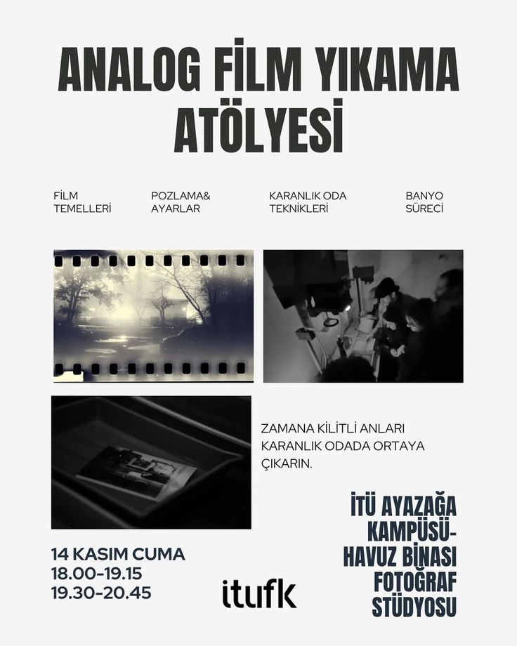 Dönemin ilk atölyesiyle karşınızdayız!! İTÜ Fotoğraf Kulübü olarak film yıkama sürecini birlikte deneyimleyeceğimiz Film Yıkama Atölyesine seni de bekliyoruz! Kontenjan sınırlı, formu doldurarak kayıt olmayı unutma!