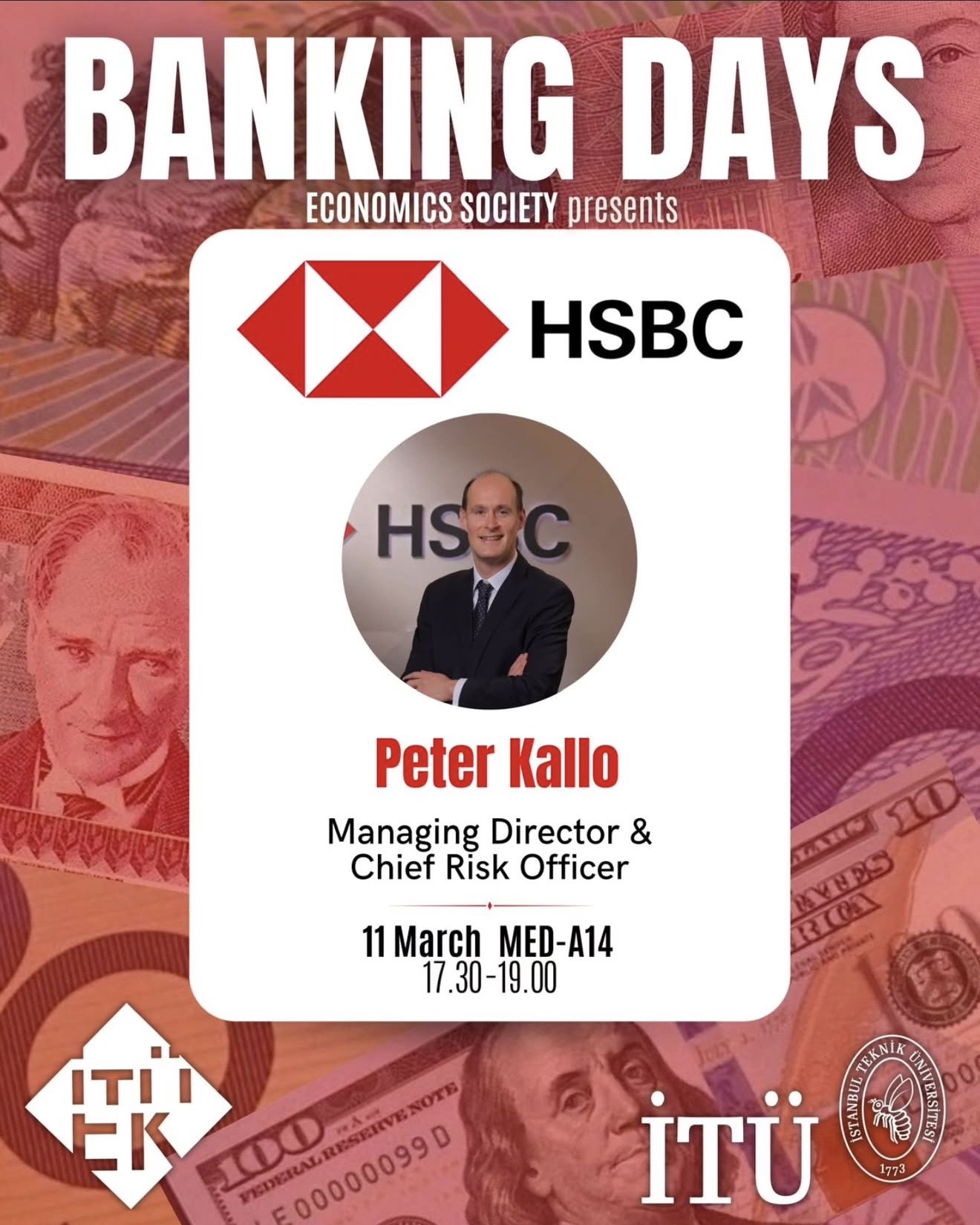 İTÜ Ekonomi Kulübü tarafından düzenlenen Banking Days, küresel bankacılık sektöründen seçkin bir konuğuyla devam ediyor. HSBC Türkiye Krediler ve Risk'ten Sorumlu Genel Müdür Yardımcısı Peter Kallo'yu ağırlıyoruz.