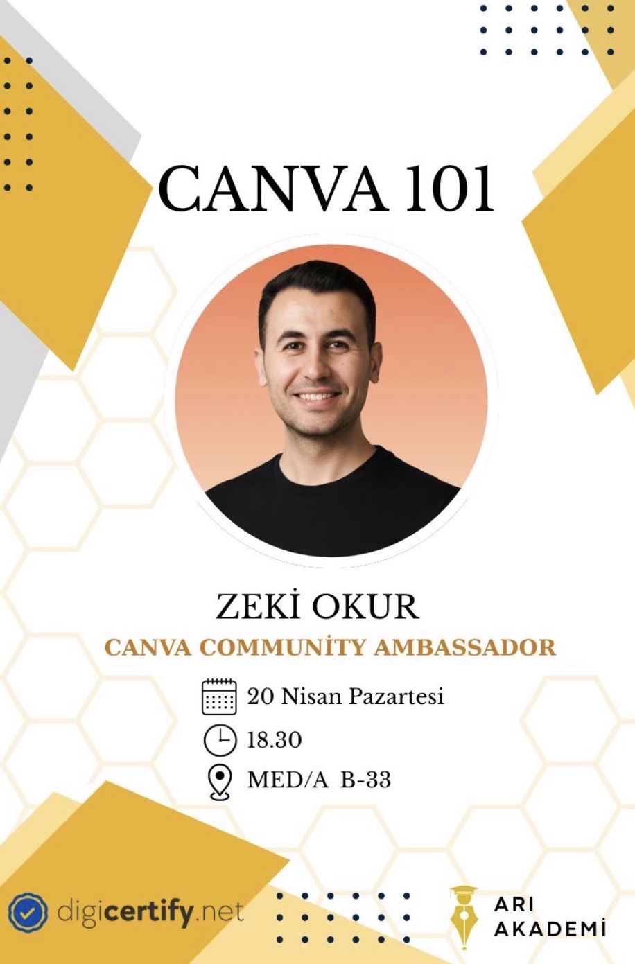 Canva Creator & Visual Designer Zeki Okur ile Cava'nın temel araçlarını, etkili tasarım prensiplerini ve profesyonel içerik üretmenin püf noktalarını birlikte keşfediyoruz. Sosyal medya postlarından sunumlara kadar tasarım becerini bir üst seviyeye taşımak için bu etkinliği kaçırma!