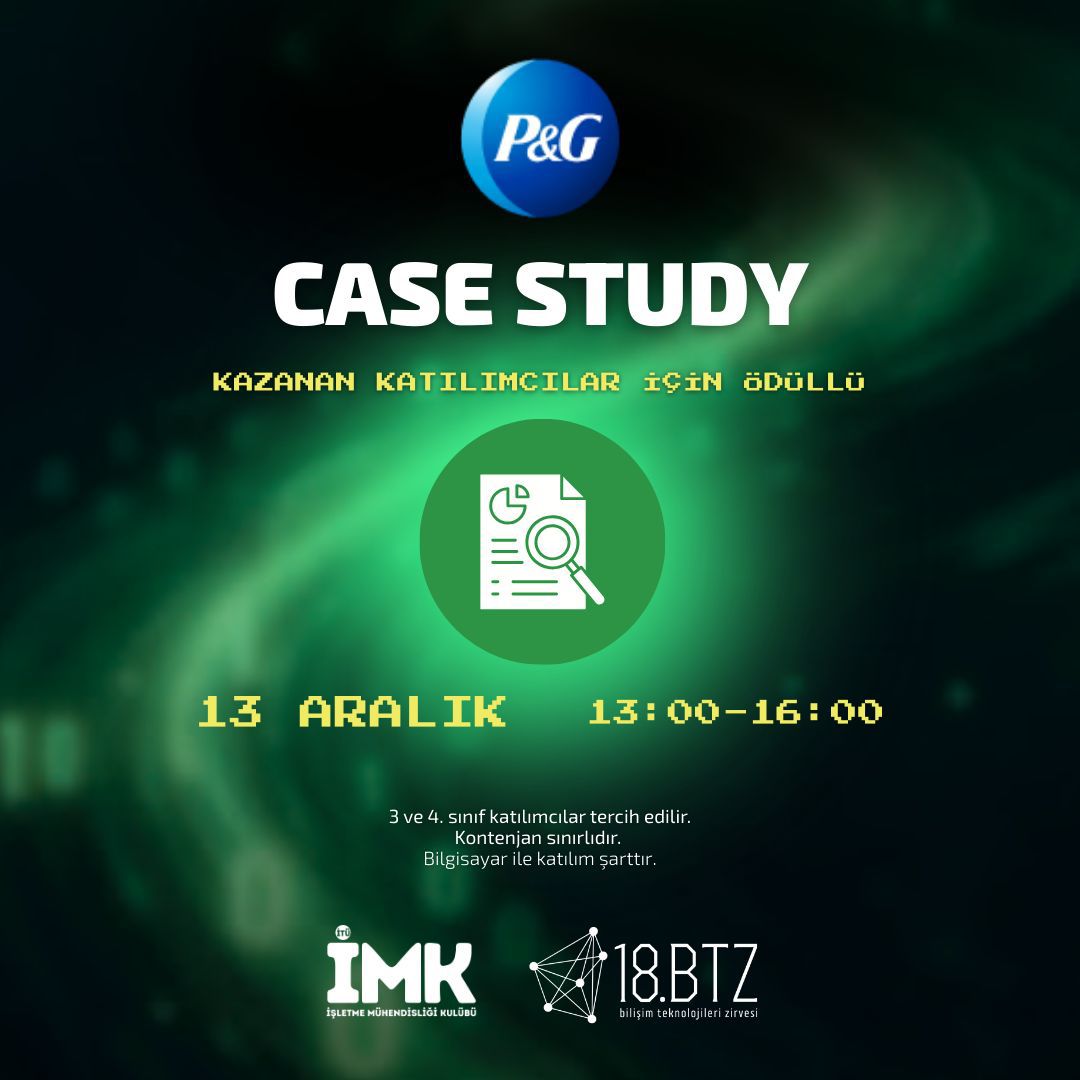 P&G tarafından gerçekleştirilecek olan Case Study’ye hepiniz davetlisiniz! Bilişim Teknolojileri Zirvesi ile eş zamanlı gerçekleşecek olan etkinliğimize katılmak için formu doldurabilirsiniz!