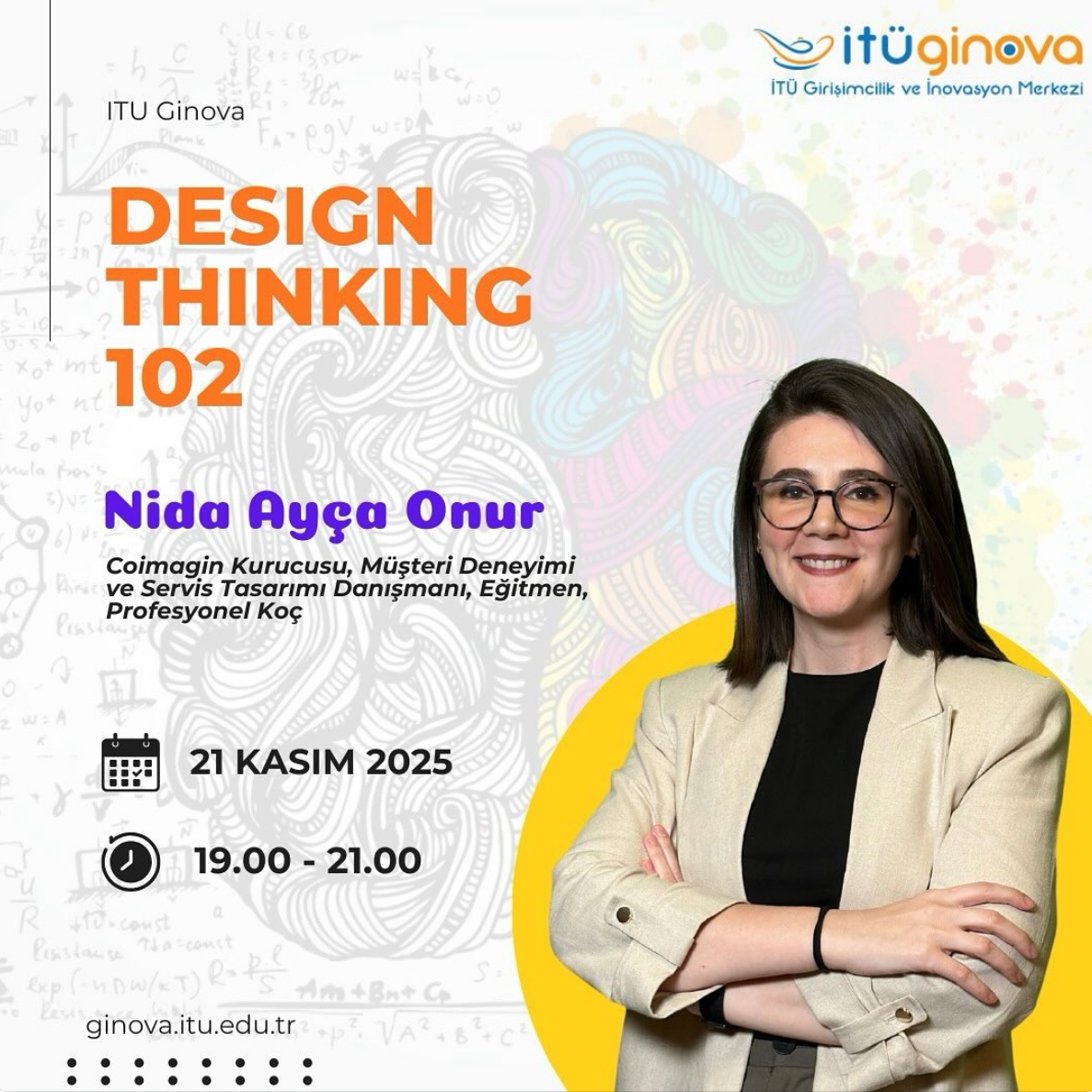 ITU GINOVA Desing Thinking 102 başlıklı bir söyleşi düzenliyor. Coimagin Design Studio & Consultancy kurucusu Nida Ayça Onur'un konuk olacağı söyleşi çevrimiçi olarak gerçekleşecek. Müşteri Deneyimi ve Servis Tasarımı Danışmanı, Eğitmen ve Profesyonel Koç Nida Ayça Onur, etkinlikte deneyimlerini katılımcılarla paylaşacak.