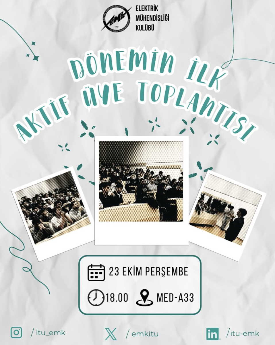 Etkinliklerde aktif rol almak, fikirlerinle sürece katkı sağlamak ve EMK ailesinin bir parçası olmak istiyorsan tam zamanı! Etkinliklerin oluşum sürecine katılmak, sorumluluk almak ve bizimle birlikte güzel işler başarmak istiyorsan seni Aktif Üye Toplantılarımızın ilkine bekliyoruz!