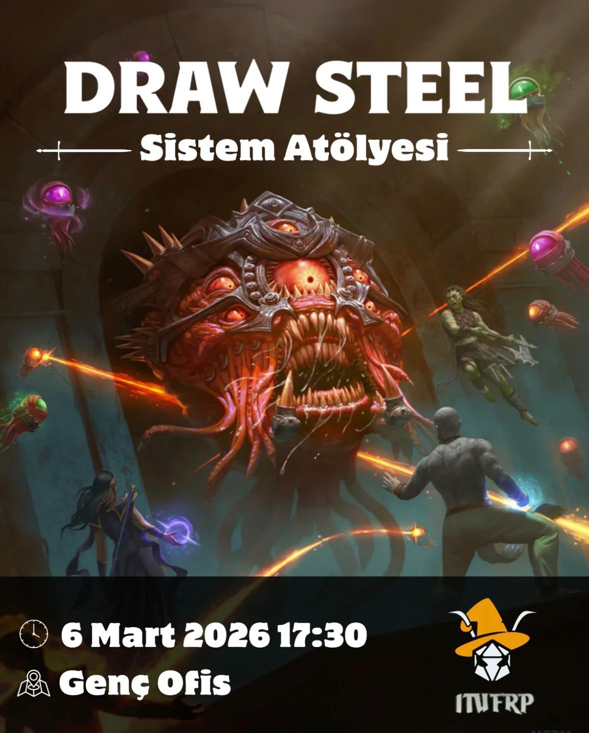 Bir maceracının yaşamıyla ölünü arasındaki ince çizgi irfanıdır! Hem yeni bilgiler edinip Draw Steel sistemini öğrenmek hem de ttrpg sistem yapıları ve karakter yaratımı konusunda hafızanızı tazelemek adına sizleri Draw Steel Sistem Atölyemize bekliyoruz.