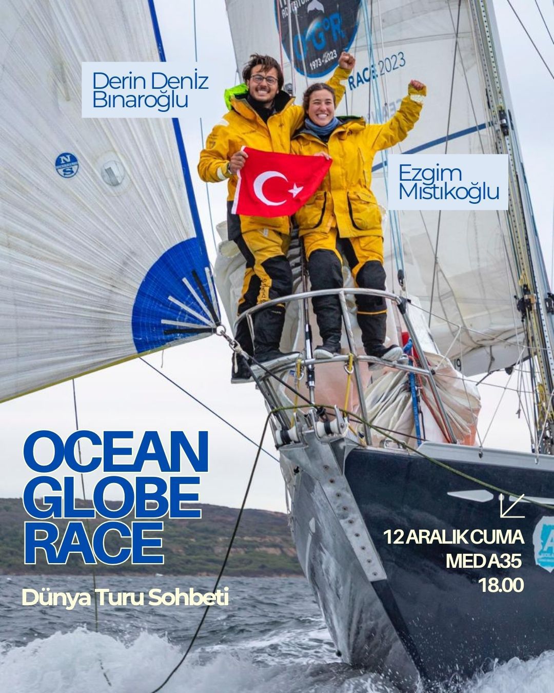 Dünyayı Yarışarak Turlayan En Genç Türklerle Buluşuyoruz! 12 Aralık Cuma günü, İTÜ Yelken Kulübü olarak MED A35’te çok özel bir söyleşi düzenliyoruz! Konuklarımız; dünyayı yarışarak turlayan en genç Türkler olarak adlarını tarihe yazdıran Ezgim Mıstkoğlu ve Derin Deniz Bınaroğlu. Onlarla okyanusların ruhunu, dünya turunun sınırlarını, zorluklarını ve ilham veren hikâyelerini konuşacağız. Yelkenin sadece bir spor değil, bir yaşam biçimi olduğunu bu söyleşide çok daha iyi anlayacaksınız.