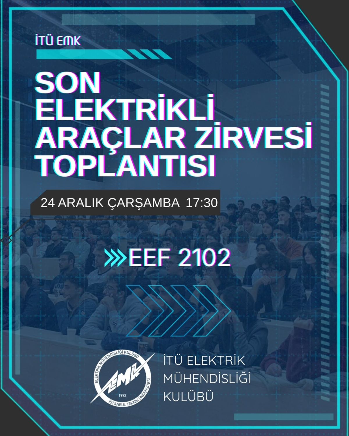 8-9 Ocak 2026'da gerçekleştireceğimiz gösterişli sergisi ve eğlenceli simülasyonlarıyla aylardır büyük bir heyecan ve emekle hazırladığımız Elektrikli Araçlar Zirvesi'ne (EAZ) sayılı günler kaldı! Sen de bu zirvede görev almak ister misin? EAZ’nin içeriği ve hedefleri zirve günü yapılacaklar, organizasyon süreci ve kalan her şeyi bu toplantıda konuşacağız.