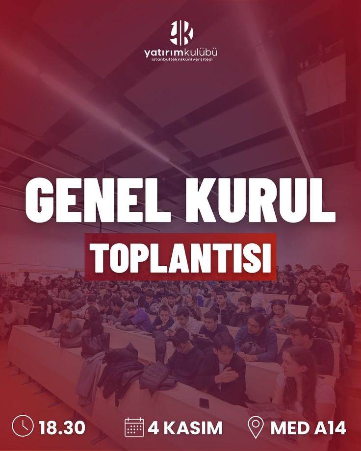 Herkese selamlar! Bu haftaki Genel Kurul Toplantımızı 4 Kasım Salı günü Ayazağa Kampüsü MED A14'te gerçekleştiriyoruz! Gelecek etkinliklerimiz hakkında detaylı bilgi vereceğimiz ve önümüzdeki etkinliğimizin organizasyon komitesi alımlarını gerçekleştireceğimiz bu toplantıya tüm İTÜ öğrencilerini davet ediyoruz!!