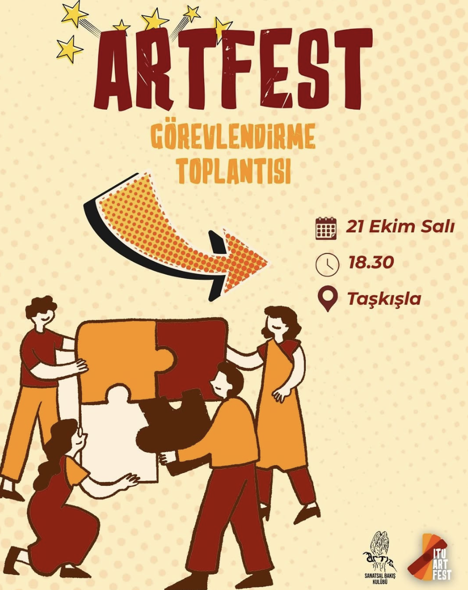 Sanatın ve heyecanın buluşma noktası ArtFEST için geri sayım başladı! Bu festivalin bir parçası olmak, fikirlerinle fark yaratmak ister misin? O zaman doğru yerdesin! ArtFEST Görevlendirme Toplantısı’nda buluşalım, görevleri paylaşıp festival ruhunu birlikte yakalayalım.