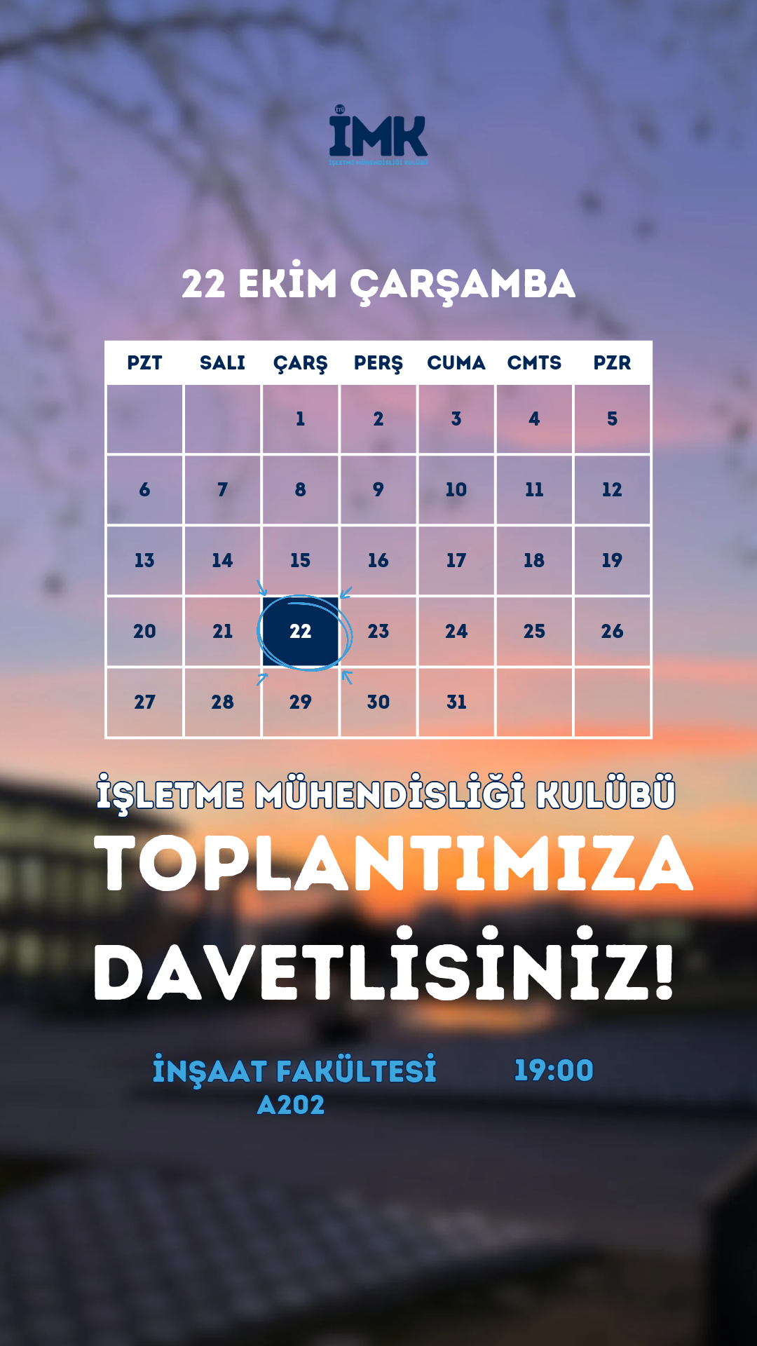 Tanışma toplantımızı büyük bir katılımla gerçekleştirdik. İMK toplantısı olmadan bir hafta geçirmek istemedik. Sizlere vermek istediğimiz çok güzel haberler var. Ayrıca sürprizlerle dolu bir toplantı olacak. Herkesi bekliyoruz!