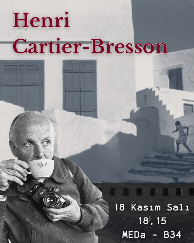 Merhaba arkadaşlar! Bu salı; Sokak Fotoğrafçılığının babası ve Magnum Fotoğraf Ajansı kurucularından Henri Cartier-Bresson'un hayatını inceleyecek, fotografisi üzerine konuşacağız. Salı akşam görüşmek üzere!