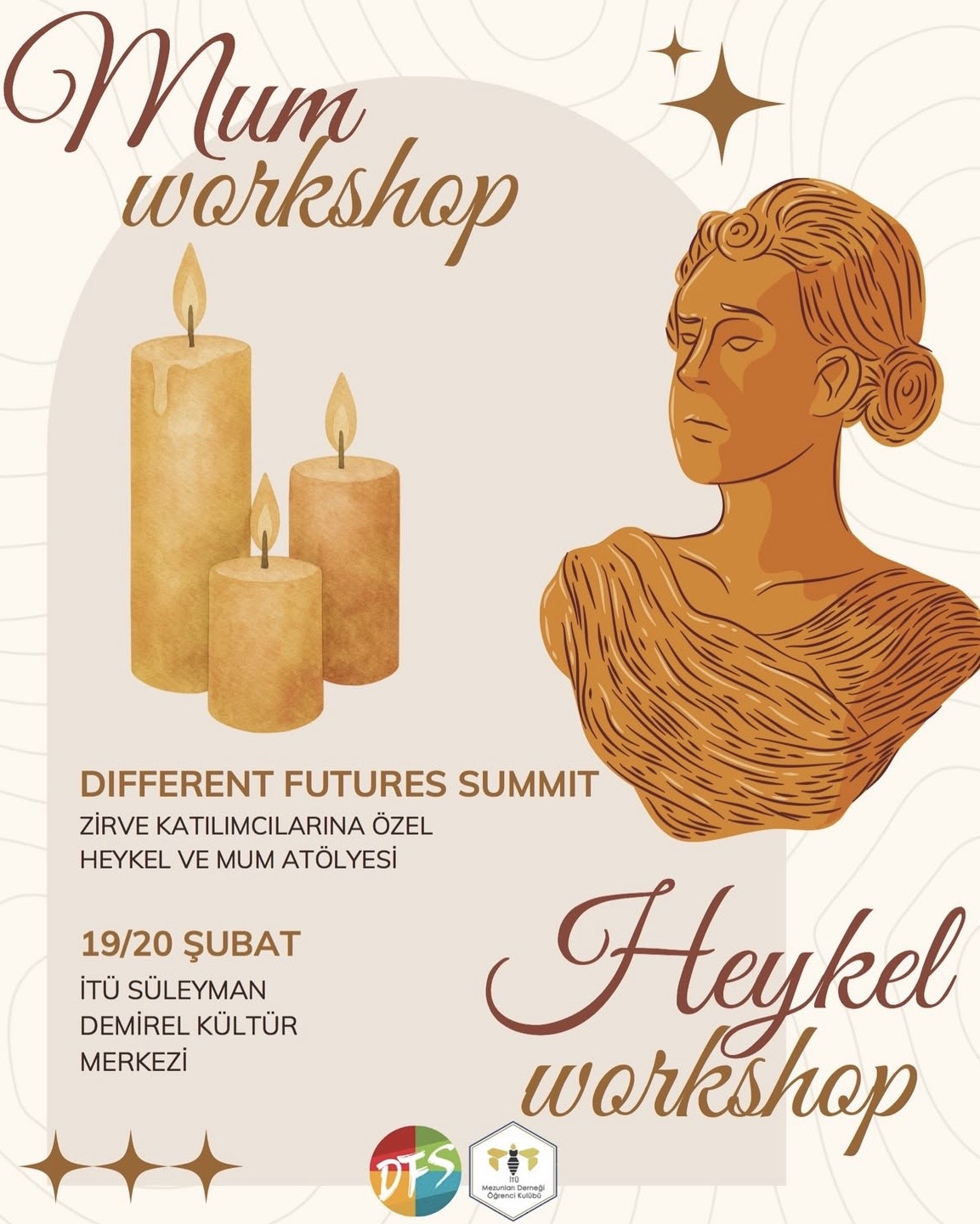 Heykel & Mum Atölyesi ile DFS ruhunu birlikte şekillendiriyoruz.Atölye hakkı kazanmak için o gün yer alan öğleden önceki oturumlarda bizimle olman ve DFS bingo kartlarını bizlere damgalatmayı unutmaman gerekiyor. Oturumlara katıl, kartını tamamla ve workshop alanında yerini al!