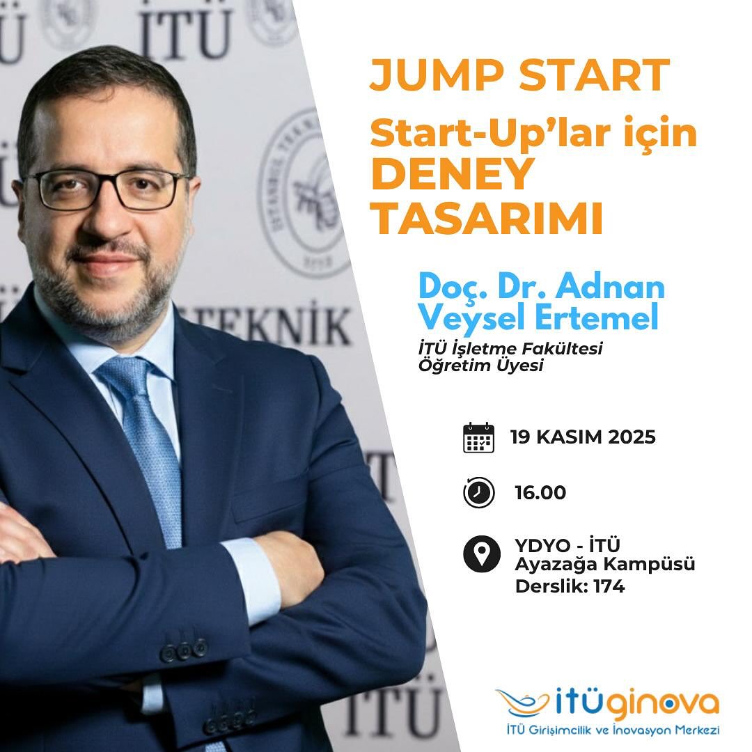 Jump Start Girişimciliğe Hızlı Başlangıç Programı’nın bu haftaki eğitiminin konusu Startup’lar için Deney Tasarımı. Doç. Dr. Adnan Veysel Ertemel tarafından verilecek eğitim, 19 Kasım Çarşamba saat 16:00’da İTÜ Ayazağa Kampüsü Yabancı Diller Yüksek Okulu Derslik 174’te yapılacaktır.