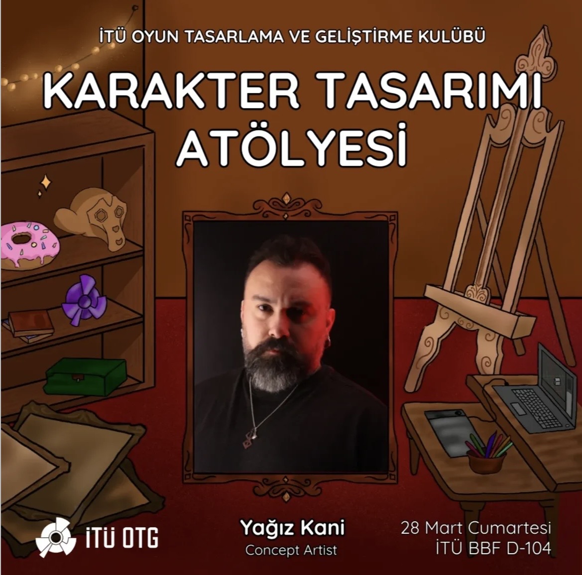 Ali Yağız Kani ile Karakter çizimi ve prensipleri ile ilgili pratik üzerine bir atölye gerçekleştireceğiz. Atölyede karakter tasarımı nedir? Nasıl yapılır? Ne gibi prensipler üzerine kuruludur? Bu gibi soruları konu alan bir sunum sonrası hep birlikte bir karakter tasarlama oturumu yapacağız. Kontenjan sınırlıdır; başvuru sonucu e-posta yoluyla bildirilecektir.