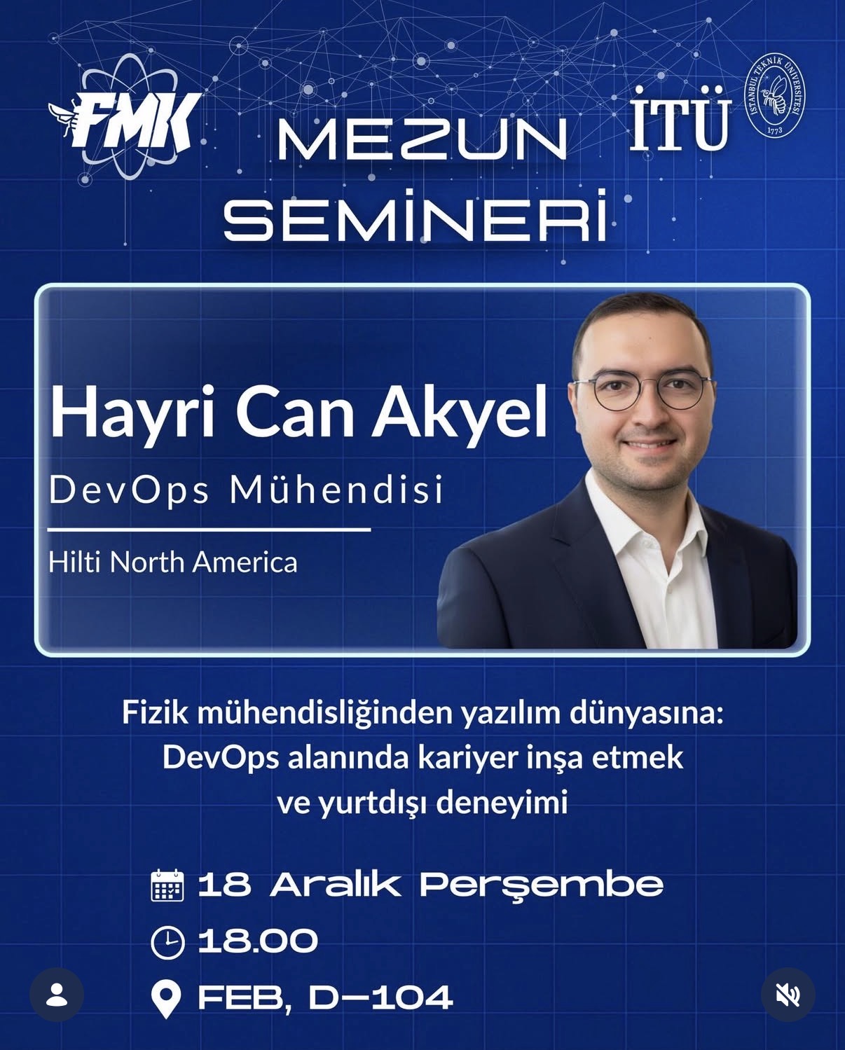 Değerli mezunumuz Hayri Can Akyel ile buluşuyoruz! Mezunumuzun deneyimlerinden ilham almak, kariyerine dair yeni bakış açıları kazanmak ve DevOps alanını daha yakından tanımak isteyen herkesi bu keyifli sohbete bekliyoruz.
