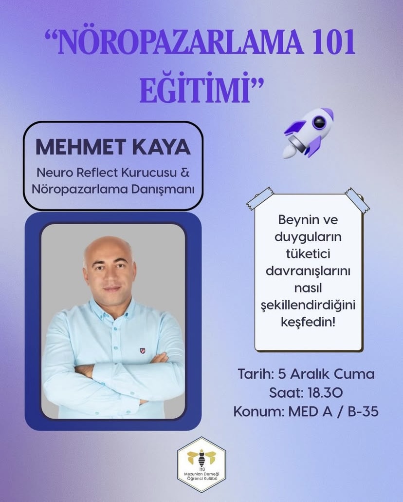 Kararlarımızın ne kadarı gerçekten bilinçli? Markalar zihnimizi hangi bilimsel yöntemlerle etkiliyor? Neuro Reflect kurucusu Mehmet Kaya ile nörobilim ve pazarlamanın kesişimindeki bu ilgi çekici dünyayı konuşacağımız Nöropazarlama 101 etkinliğimiz için seni de bekliyoruz!