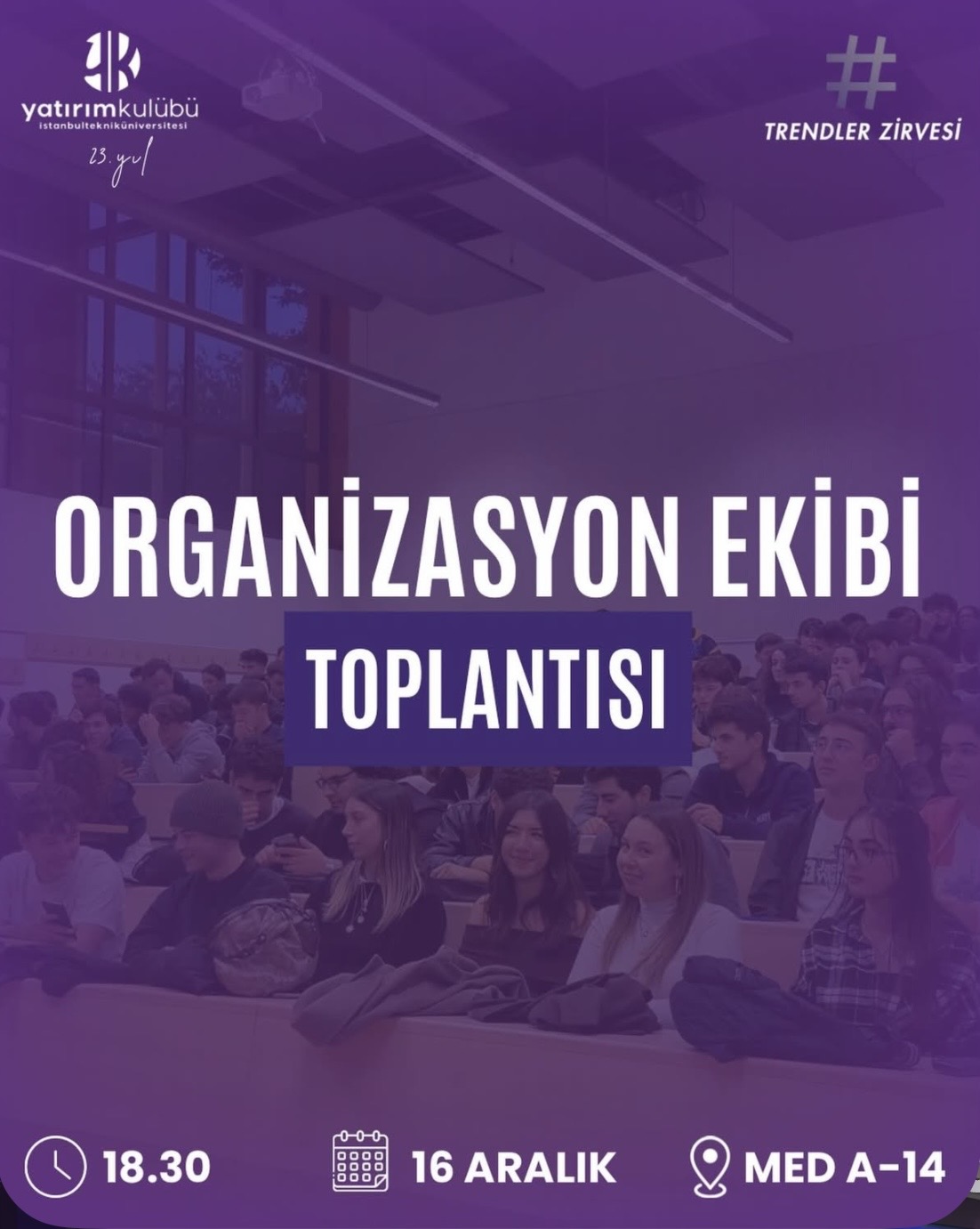 Etkinliğimizin işleyişi hakkında bilgi vereceğimiz ve organizasyon komitesi alımlarını gerçekleştireceğimiz bu toplantıya tüm İTÜ öğrencilerini davet ediyoruz. Hazırsan Trendler Zirvesi organizasyon komitesi alımları başlıyor! Linkten başvurmayı unutma!