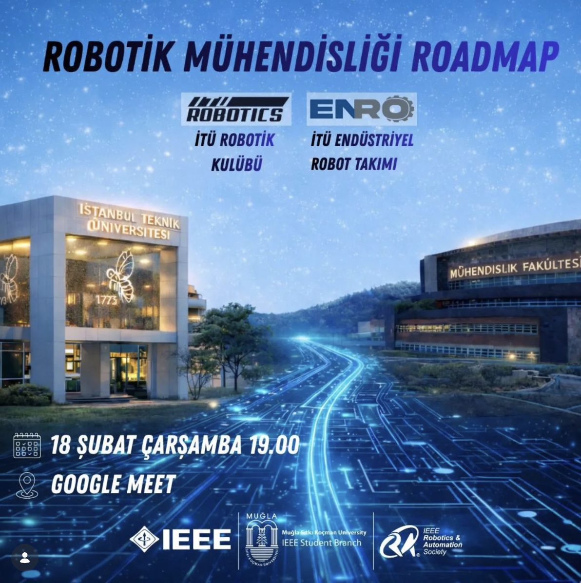 Bu etkinlikte, robotik mühendisligi alanında izlenebilecek yol haritasını, gerekli teknik becerileri ve kariyer fırsatlarını yakından tanıma fırsatı bulacaksınız.Link, etkinlik saatinden önce IEEE MSKU Instagram sayfasından ve Whatsapp grubundan paylaşılacaktır.