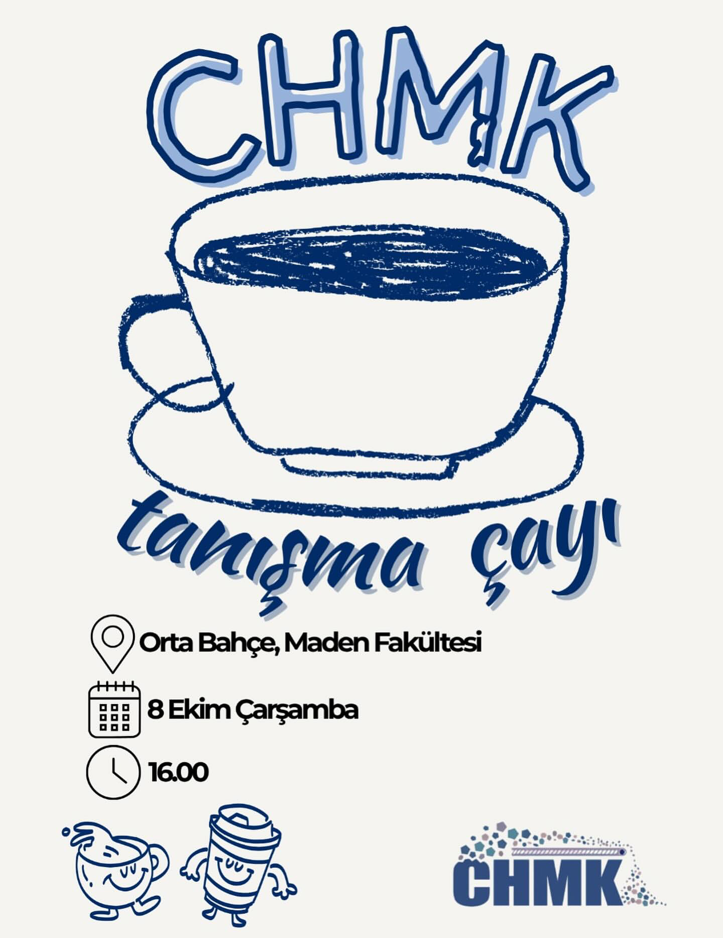 İTÜ Cevher Hazırlama Mühendisliği Kulübü olarak yeni döneme keyifli bir başlangıç yapıyoruz! 8 Ekim Çarşamba günü saat 16.00’da, Maden Fakültesi Orta Bahçe’de gerçekleştireceğimiz Tanışma Çayı etkinliğimizde her sınıftan öğrencinin bir araya gelerek tanışmasını, kaynaşmasını ve kulübümüzü yakından tanımasını hedefliyoruz. Birlikte sohbet edip yeni arkadaşlıklar kurmak, kulüp faaliyetlerimiz hakkında bilgi almak ve güzel bir atmosferde döneme başlamak için seni de aramızda görmekten mutluluk duyarız!
