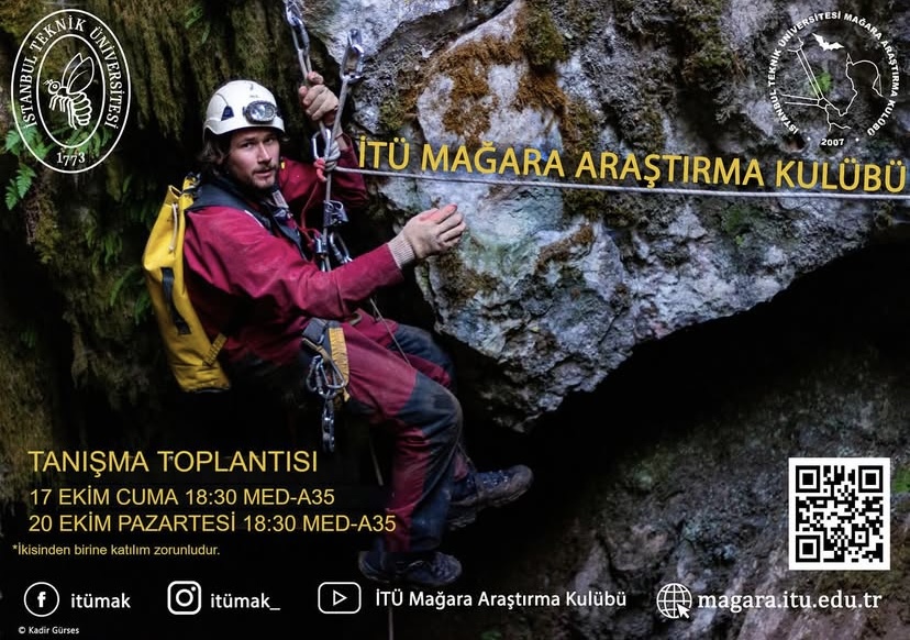 Yeni dönem kayıtlarımız başladı! Sen de bizimle yer altının güzelliklerini keşfetmek istiyorsan 17 Ekim Cuma ve 20 Ekim Pazartesi akşamı yapacağımız tanışma toplantısı ve temel eğitimlerimize davetlisin. Ayrıca kulübümüz ve mağaracılık hakkında merak ettiklerini kulüpler şenliğinde standımıza uğrayarak öğrenebilirsin. İki toplantı da MED A35'de saat 18:30'da başlayacaktır. Not: Temel eğitimleri de kapsayan bu toplantılardan birine katılmanız gerekli ve yeterlidir.