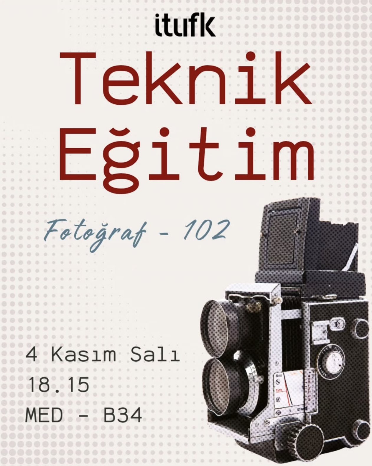 Herkese merhaba! İTÜFK olarak teknik eğitimimizin devamı niteliğindeki Fotoğraf 102 etkinliğimizde bir araya geliyoruz. Fotoğrafın teknik detaylarına ineceğimiz, Fotoğraf makinelerimizi daha yakından tanıyacağımız; A'dan Z'ye bir eğitim için hepinizi bekliyoruz!