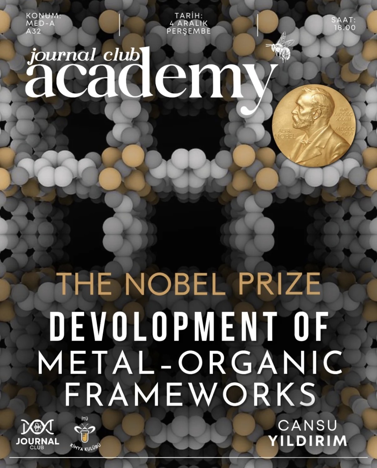 Cansu Yıldırım'ın bu sunumında, son yılların en heyecan verici kimya gelişmelerinden biri olan Metal-Organik Kafeslerin (MOF'lar) geliştirilmesine odaklanan Nobel Ödüllü çalışmaları ayrıntılı bir şekilde ele alacağız. Not: Sunum Türkçe olacaktır.