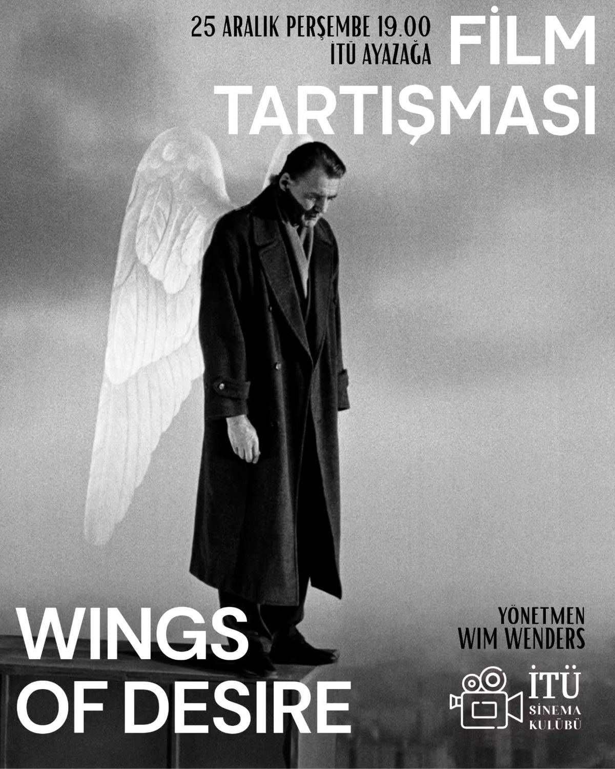 Bu hafta Wim Wenders’in yönetmenliğini yaptığı, sinema tarihinin en lirik eserlerinden biri olan Wings of Desire filmini tartışmak için bir araya geliyoruz. Siyah-beyaz bir Berlin’in üzerinde süzülen meleklerin gözünden; insan olmanın ağırlığını, sevginin rengini ve ölümlü olmanın o hüzünlü güzelliğini birlikte keşfedeceğiz. Şehrin duvarları arasında yankılanan iç seslere kulak verirken, "insan olmanın ne demek olduğu" üzerine keyifli bir tartışmaya davetlisiniz!