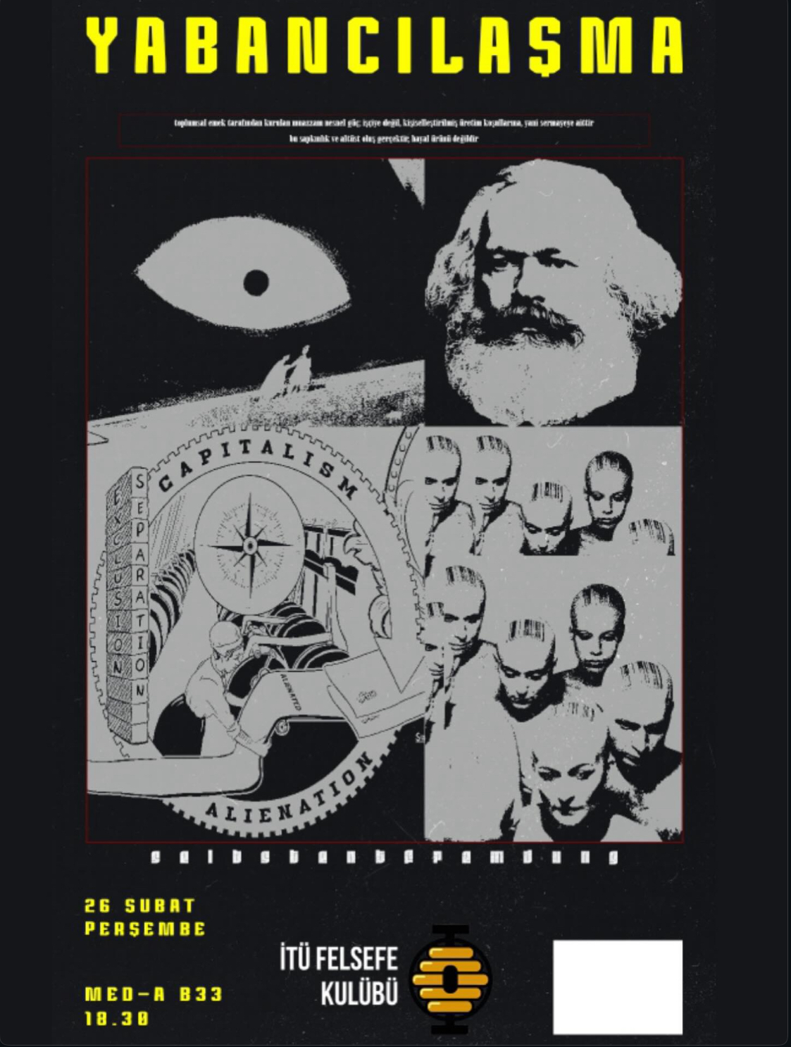 Yabancılaşma konusunu tartışacağımız bu haftaki etkinliğimize tüm sıra arkadaşlarımızı bekliyoruz!