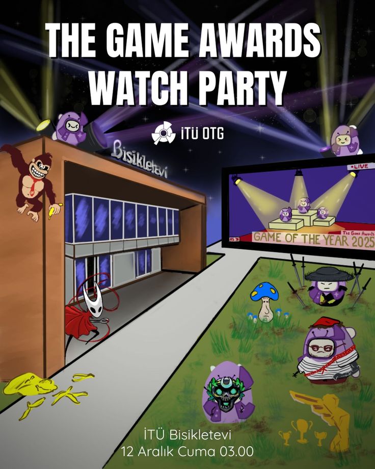 Yılın oyunu ödüllerini bizimle birlikte izle! 12 Aralık Cuma günü saat 03.00’te (11 Aralık Perşembe’yi 12 Aralık Cuma’ya bağlayan gece) The Game Awards canlı yayınını izlemek için Bisiklet Evi’nde bir araya geliyoruz! Mekan kapasitesi gereği koku yapabilecek yiyecek getirilmesi yasaktır; ancak dilediğiniz içeceği yanınızda getirebilirsiniz.