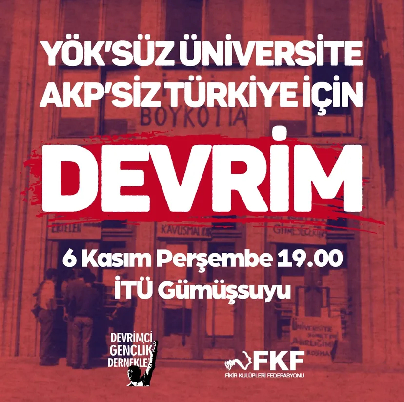 İstanbul Teknik Üniversitesi’nin (İTÜ) Gümüşsuyu Kampüsü önünde, Yükseköğretim Kurulu’nun (YÖK) 44. kuruluş yıl dönümü dolayısıyla Fikir Kulüpleri Federasyonu (FKF) ve Devrimci Gençlik Dernekleri (DGD) tarafından 6 Kasım Perşembe günü bir eylem düzenlendi.