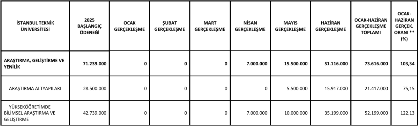 2025 yılı için İTÜ’nün bütçesi 6.668.709.000 TL olarak belirlenmişti, bu miktarın yıl sonuna kadar 7.580.747.161 TL'ye ulaşması bekleniyor.