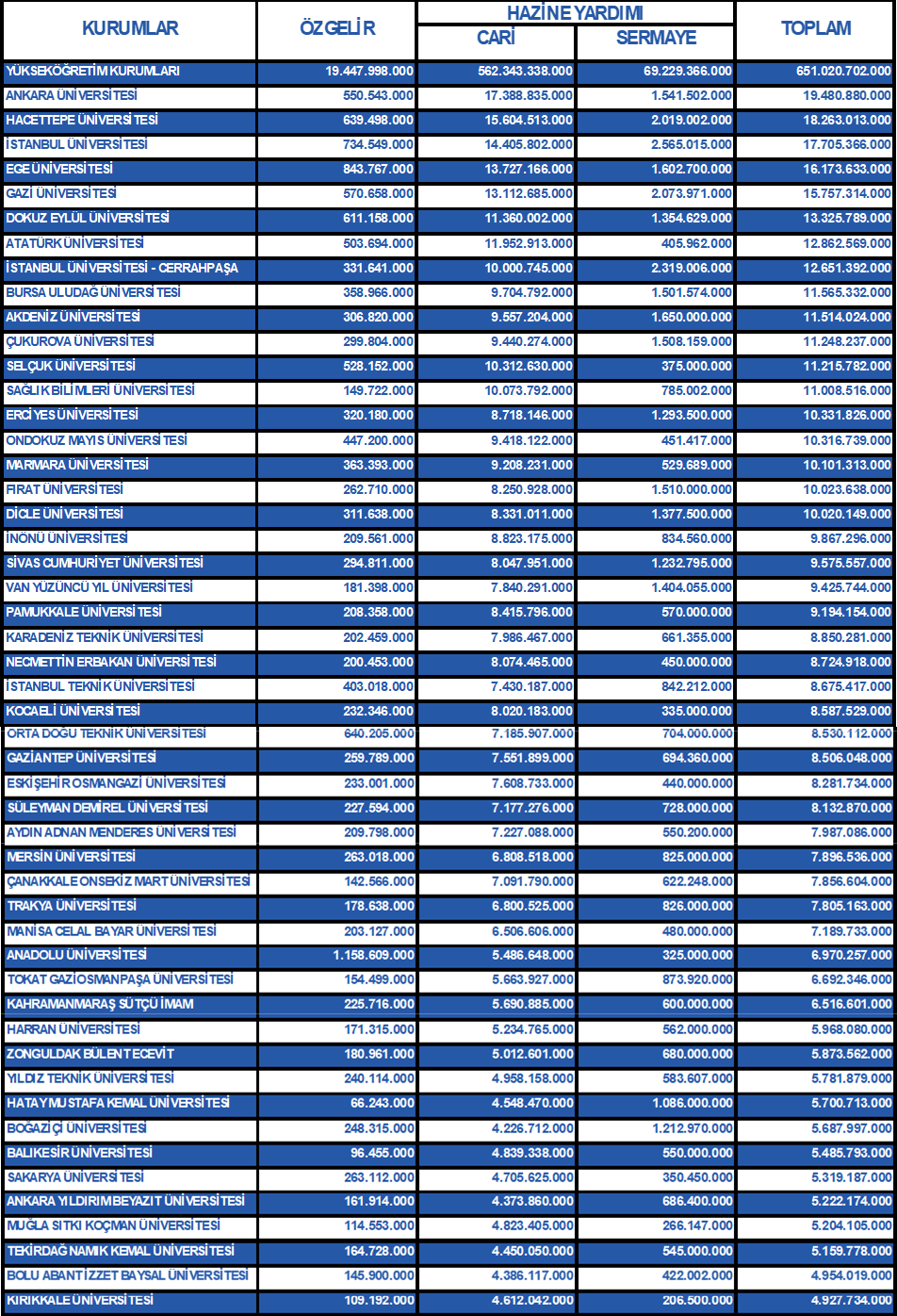Üniversiteler bütçe sıralamasında 25. olan İTÜ, sermaye sıralamasında 20. oldu. Aşağıda sizler için genel bütçede yer alan ilk 50 üniversiteyi sıraladık.